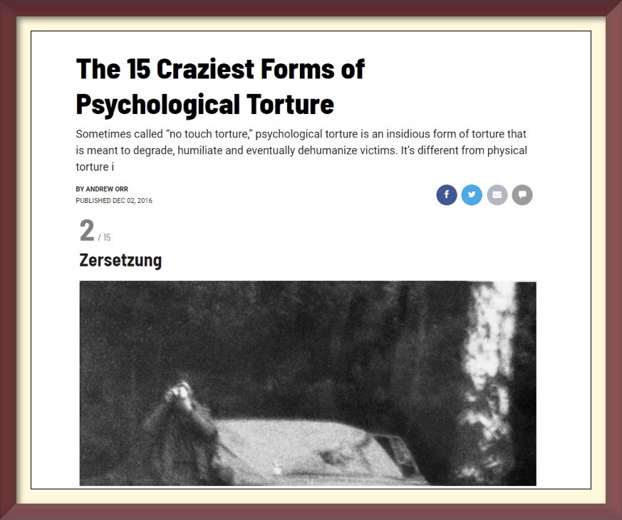 And thus, Zersetzung “no touch” torture was born, replacing the Stasi’s former, overt, violence and repression with covert, psychological warfare tactics, surveillance abuse, smear campaigns, manufactured disappointments and disasters in the lives of its targets, and the deliberate misuse of operational psychology.
